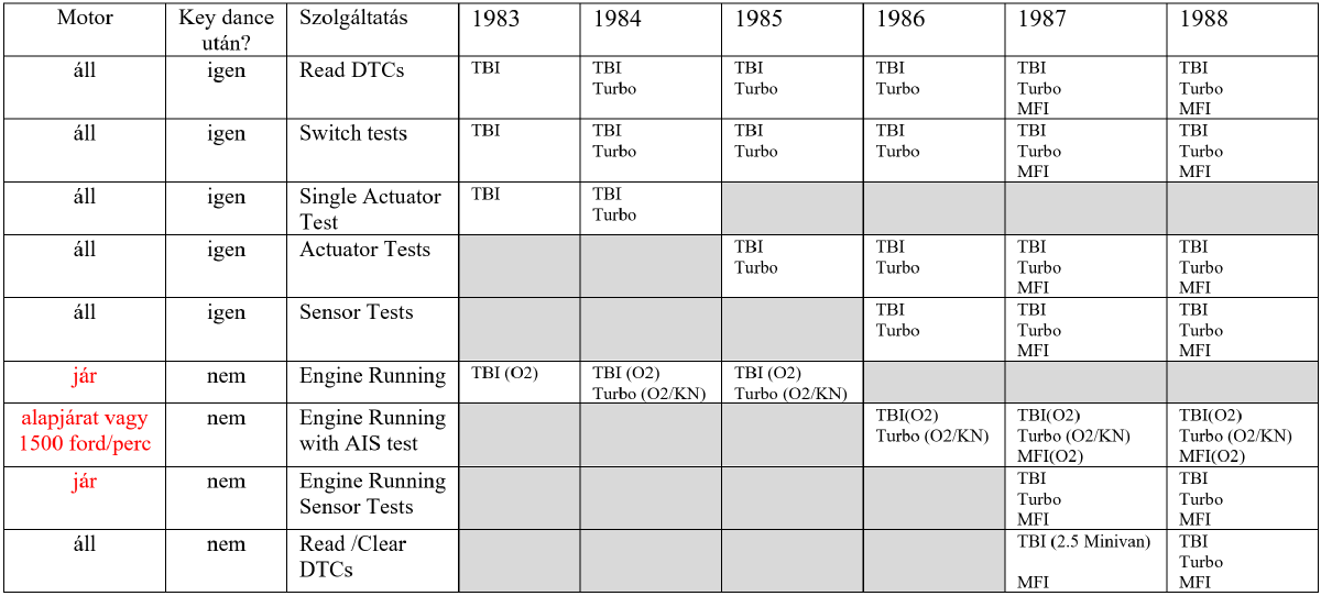 Ez a táblázat már érzékelteti, miért nehéz gyári szintű diagnosztikai kiolvasót készíteni. Évről-évre sokminden változik, egy évjáratban többféle változat van és néhány kivétel. A scan tool-nak pedig mindezt fejben kell tartania egyébként nem használható jól.