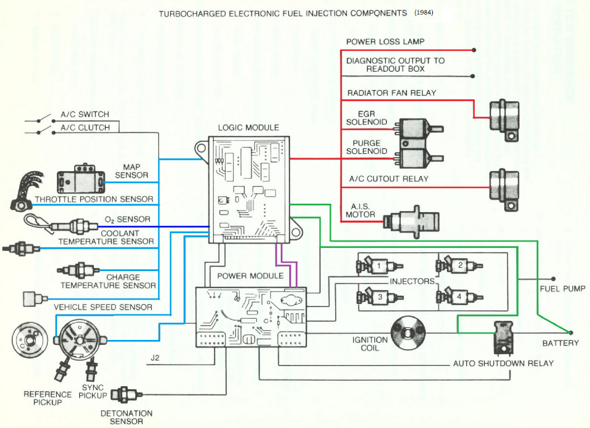 Ez a legegyszerűbb, 1984-es rendszer. Az évek során bővítették az összefüggések ellenőrzését. (Pl. 1986-tól a számítógép figyeli, hogy a motor eléri-e az üzemi hőmérsékletét az indítás után 20 perccel. Ha nem, akkor gond van a hűtőrendszerrel, pl. folyton nyitva van a termosztát, vagy rossz az érzékelő.)