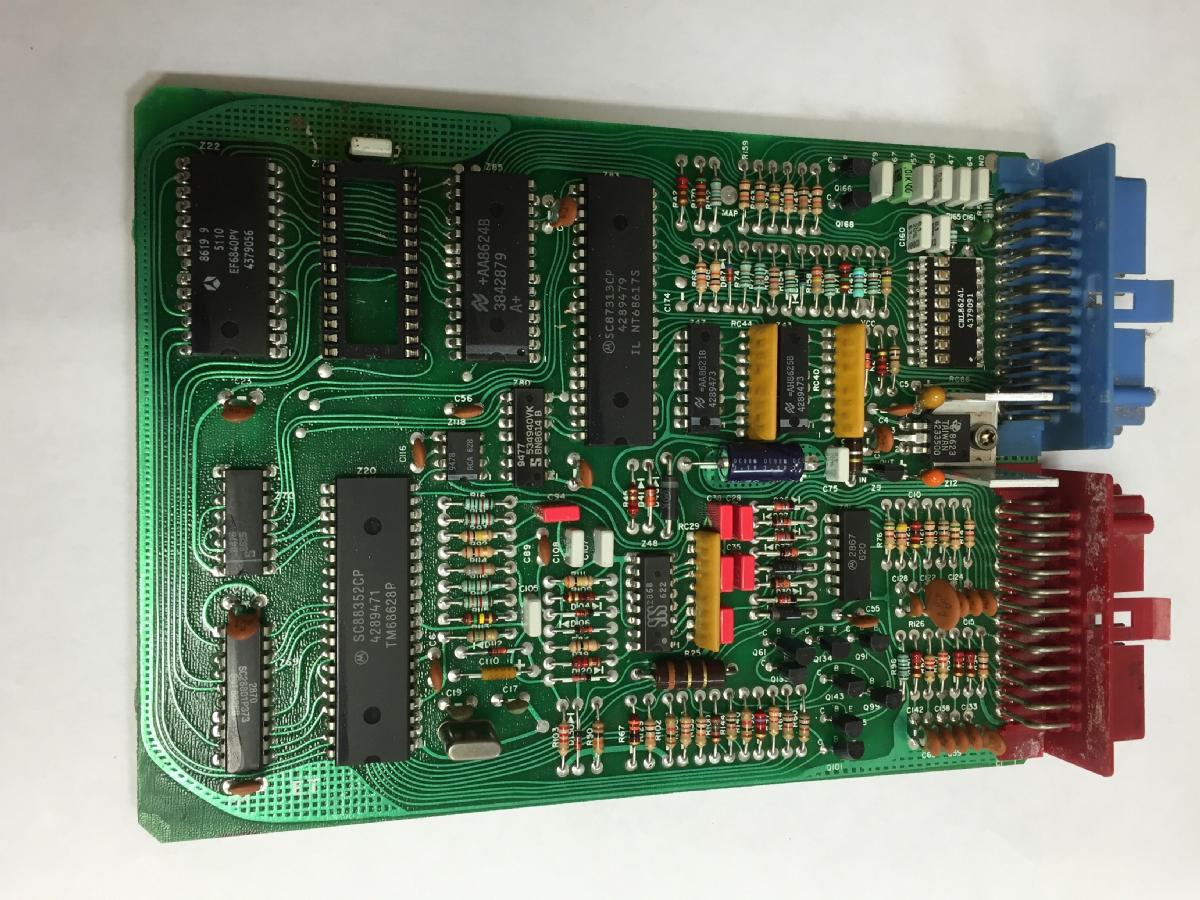 A Logic Module nyomtatott áramköre klasszikus. Furatszerelt alkatrészeket tartalmaz és látszik, hogy kézzel tervezték. A képen megfigyelhetjük az autógyártók egyik szokását, a katalógus áramköröket gyakran egyedi feliratozással rendelik meg. A Z20 pozícióban ülő 6803U4 processzoron "SC88352CP" felirat díszeleg. Így nehezebb a számítógépek visszafejtése, javítása. (Az üres foglalat helyén van gyárilag az EPROM. Ez már egy módosított, "socketed", átprogramozható modul.)