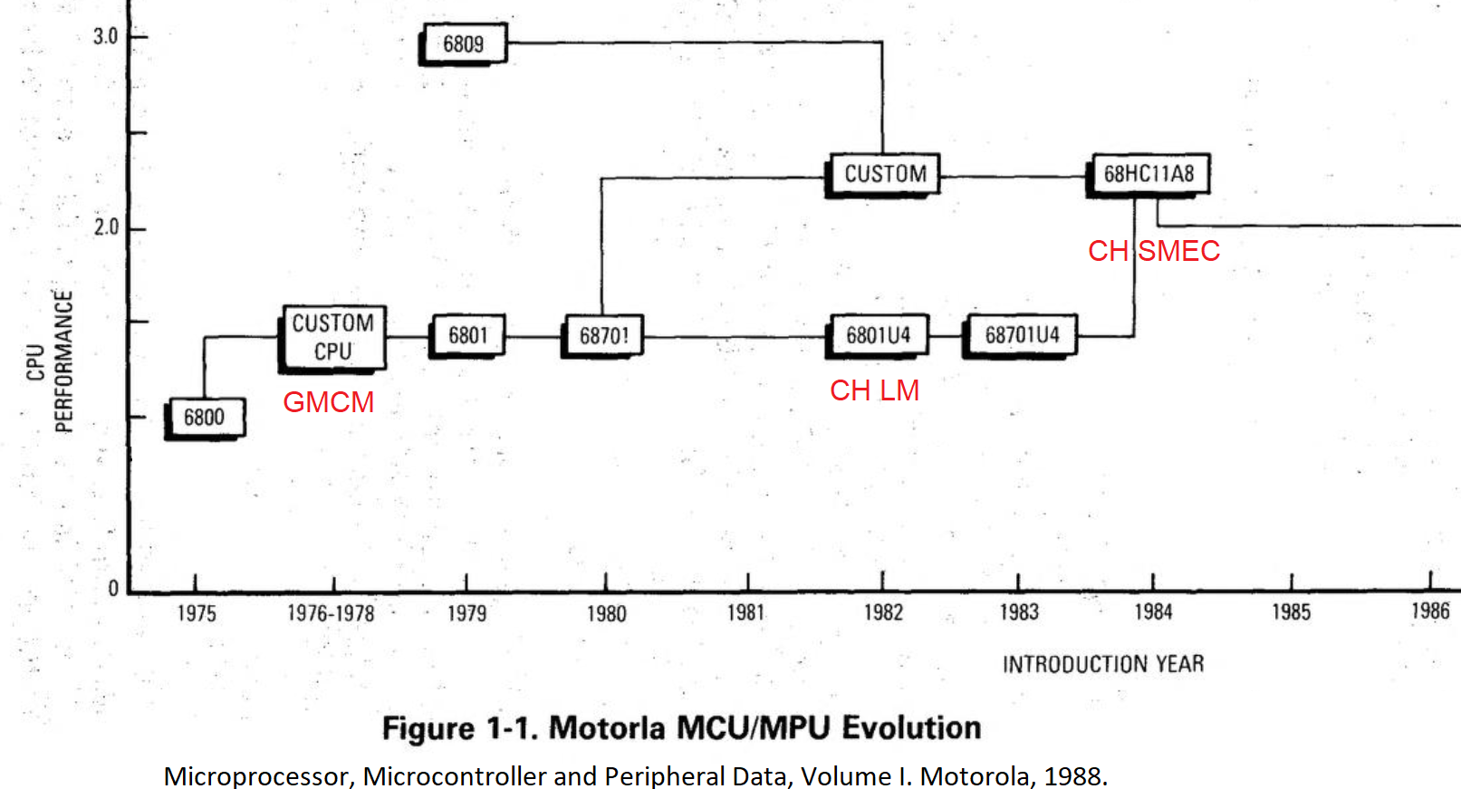 A processzor választásban a Chrysler a GM-et követte. A Motorola fejlesztette a "GM Custom Microprocessor"-t a 70-es évek második felében. Ennek piaci leszármazottja a 6801, s ebből lett a 6801U4 / 6803U4.