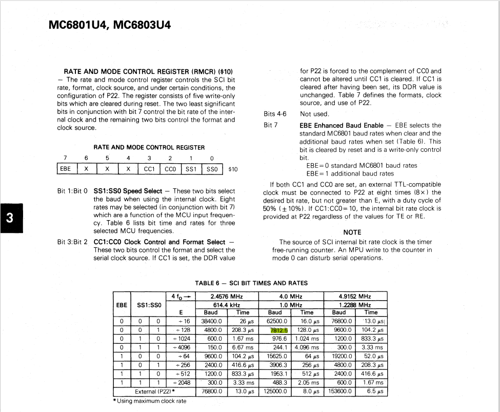 Az első Chrysler motorirányító számítógépekben Motorola 6803U4 processzort használtak, 1 MHz órajellel. A processzor saját soros kommunikációs felülete lett a diagnosztikai felület. Az alábbi katalógus részlet mutatja a bitsebességek lehetséges beállításait.